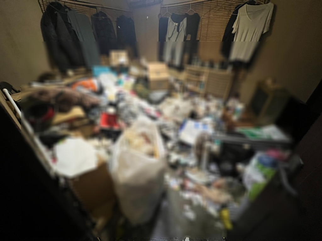 詳細としましては8畳のお部屋(クローゼット、押入れが別にあり)だいたい太ももくらいの高さまでゴミが敷詰まったお部屋でした!